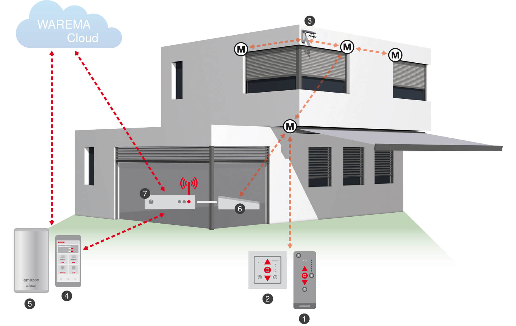 EWFS und WMS, die Funksysteme von WAREMA, vereinen Komfort und hervorragende Ausbaufähigkeit. Sie steuern Ihren Sonnenschutz oder das Licht bequem per Funk. Individuelle Steuerungsanforderungen werden durch beide Systeme mit modernster Technik verwirklicht. Die Montage der Einzelkomponenten erfolgt per plug & play direkt am Sonnenschutzprodukt. Ideal zum Nachrüsten dank unkomplizierter Leitungsverlegung.